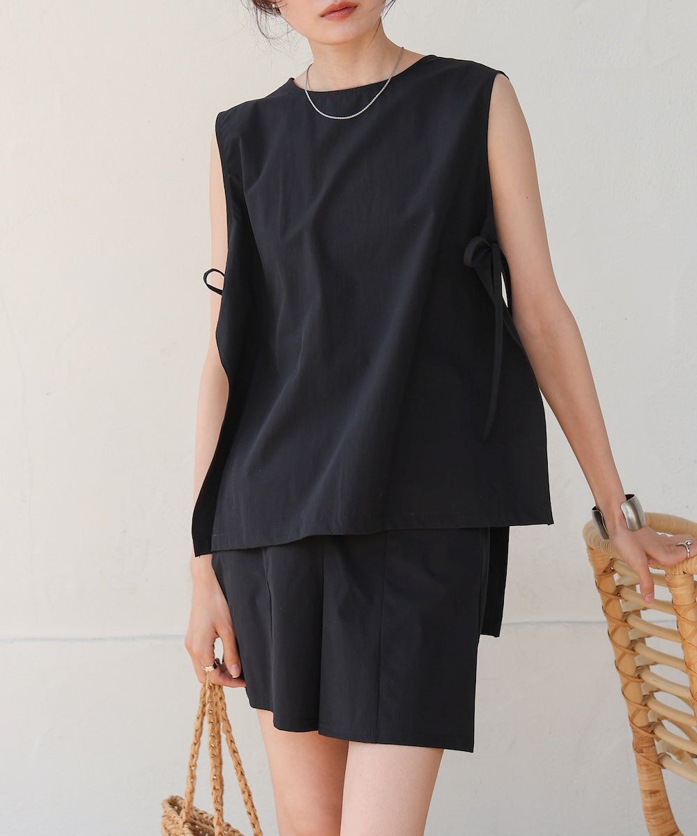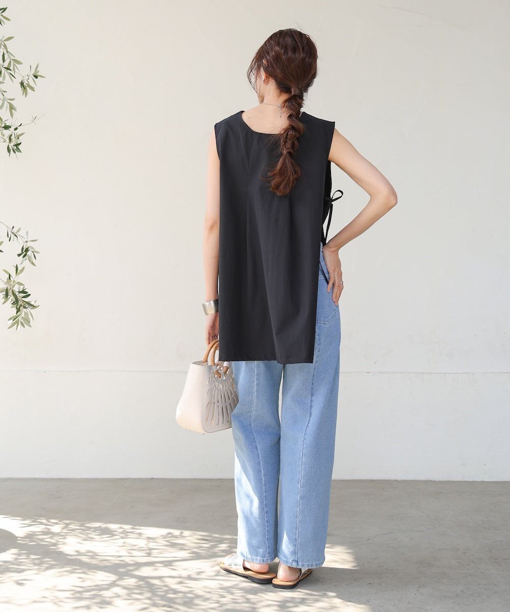サイドのリボンを結ぶとウエスト周りがきゅっと細見えし、前後で丈感も違うので体型カバーも◎