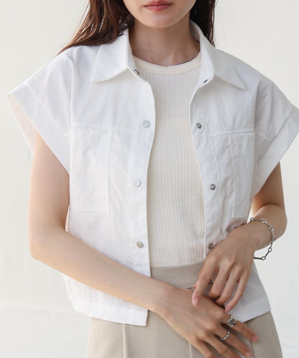涼しげな抜け感と上品さを兼ね備えた、フレンチスリーブのサマージャケットトップス。