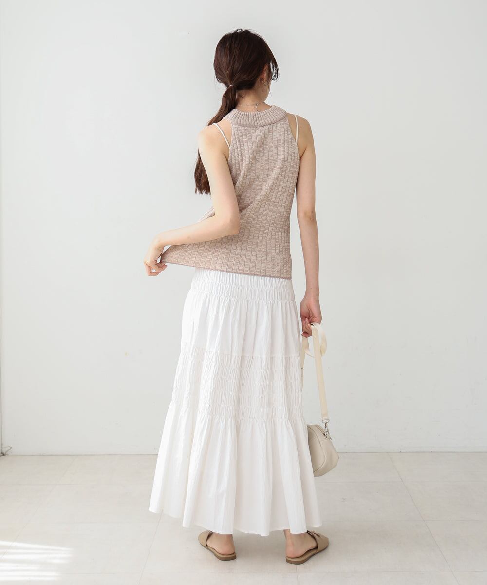 タック入りのハイウエストパンツやマーメイドスカートを合わせるとキレイ目。