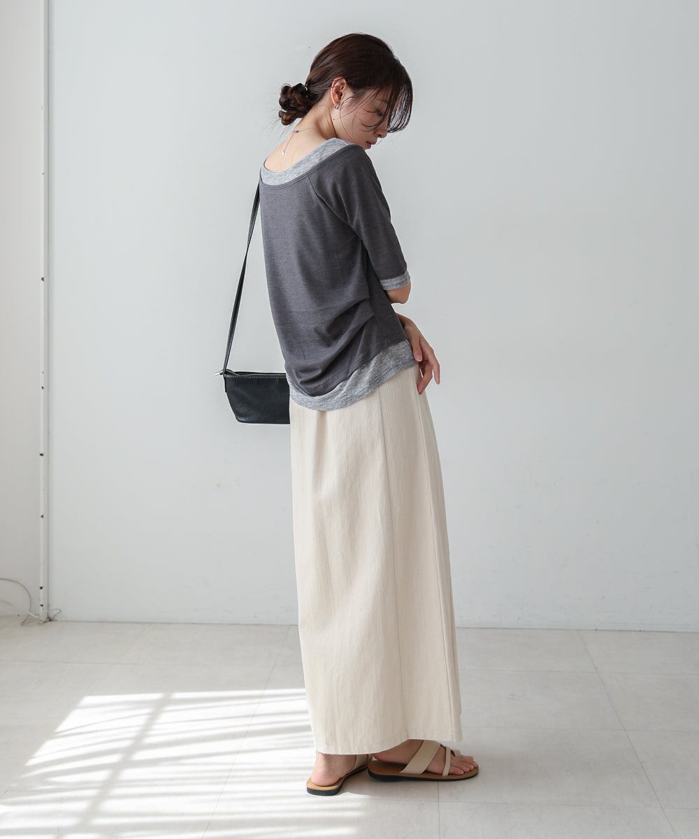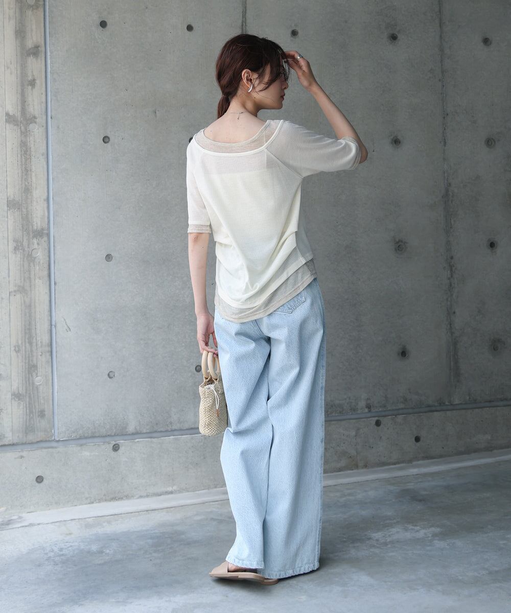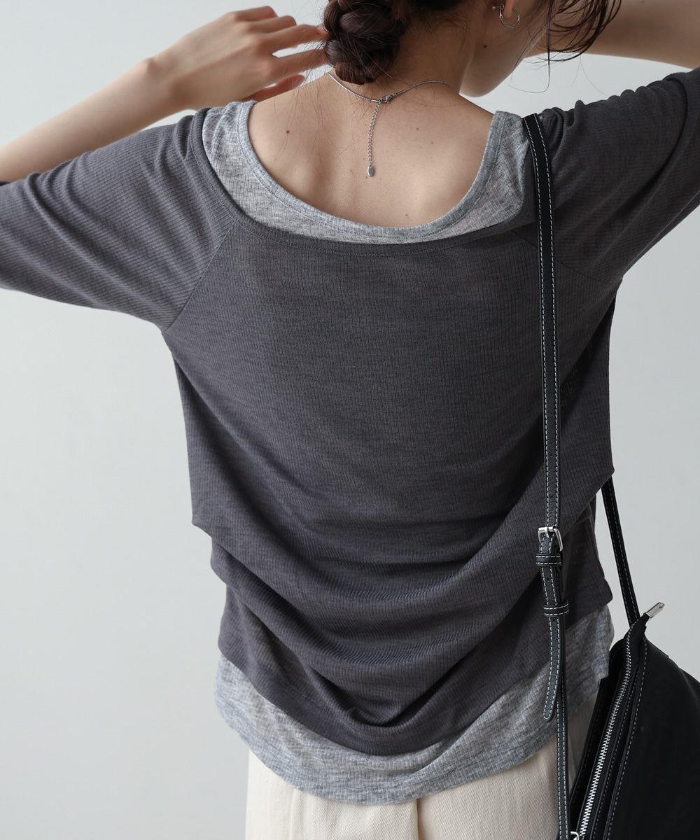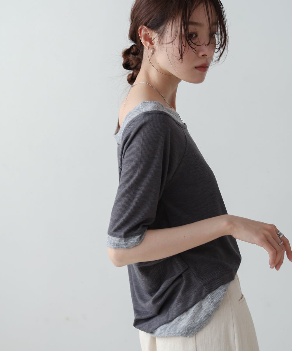 レイヤードオフショル風カットトップス