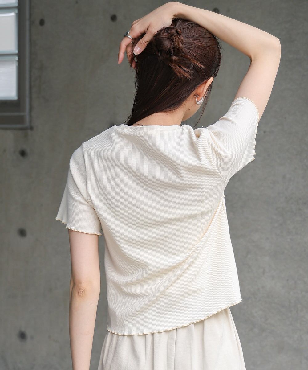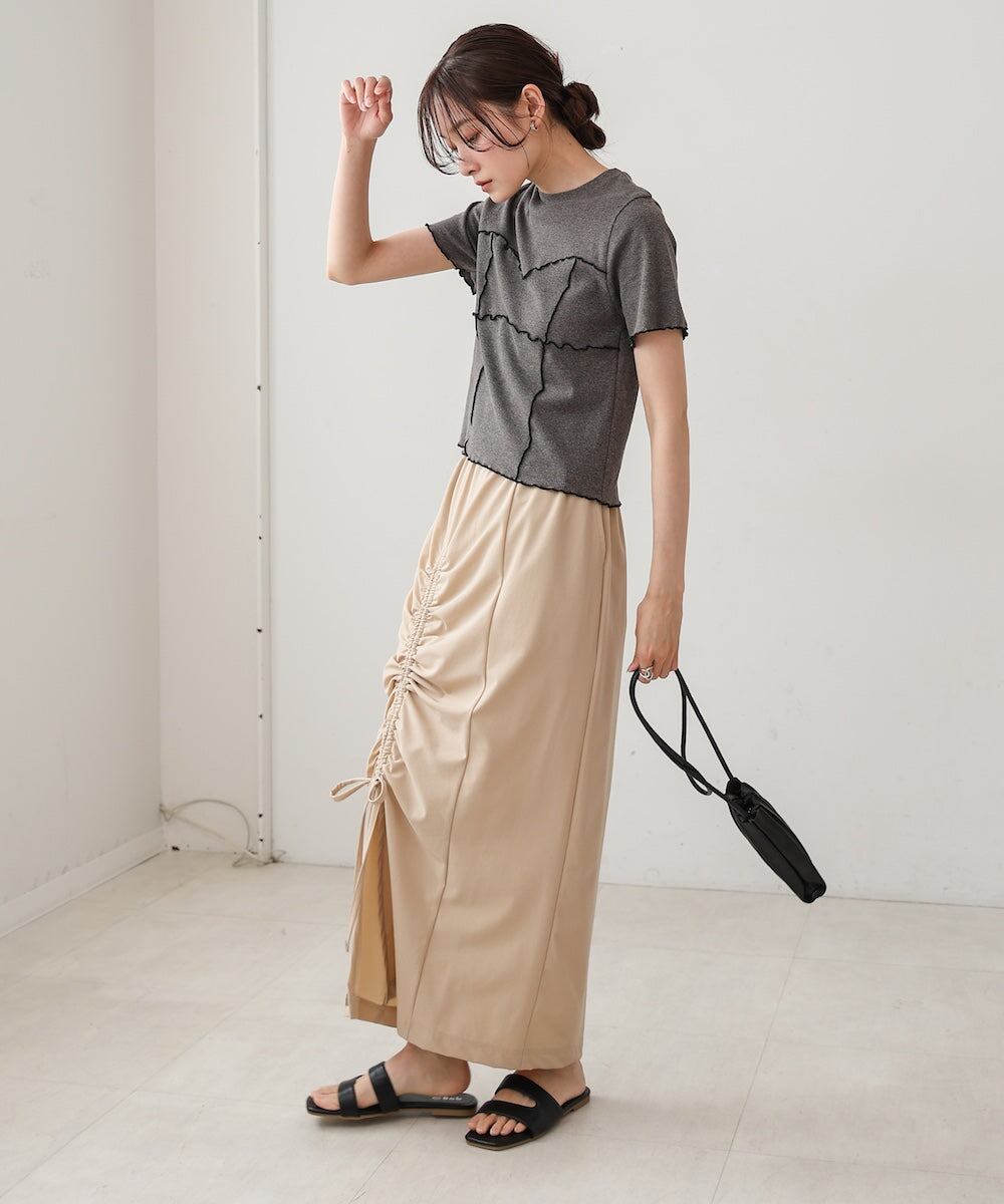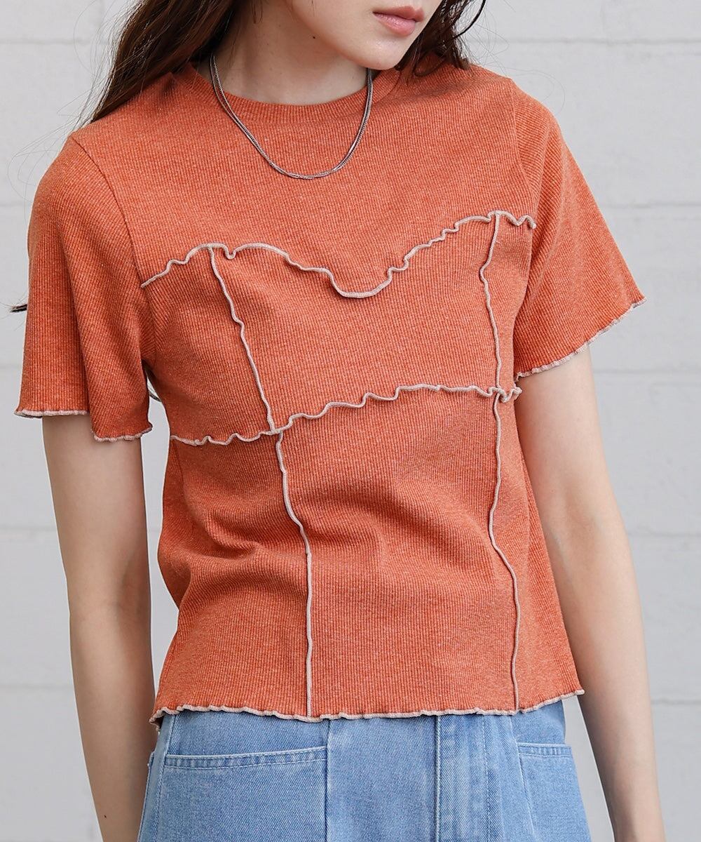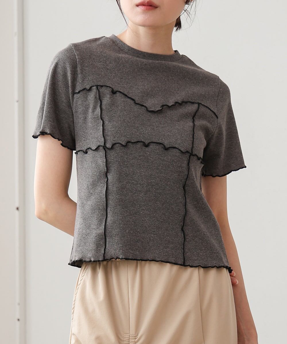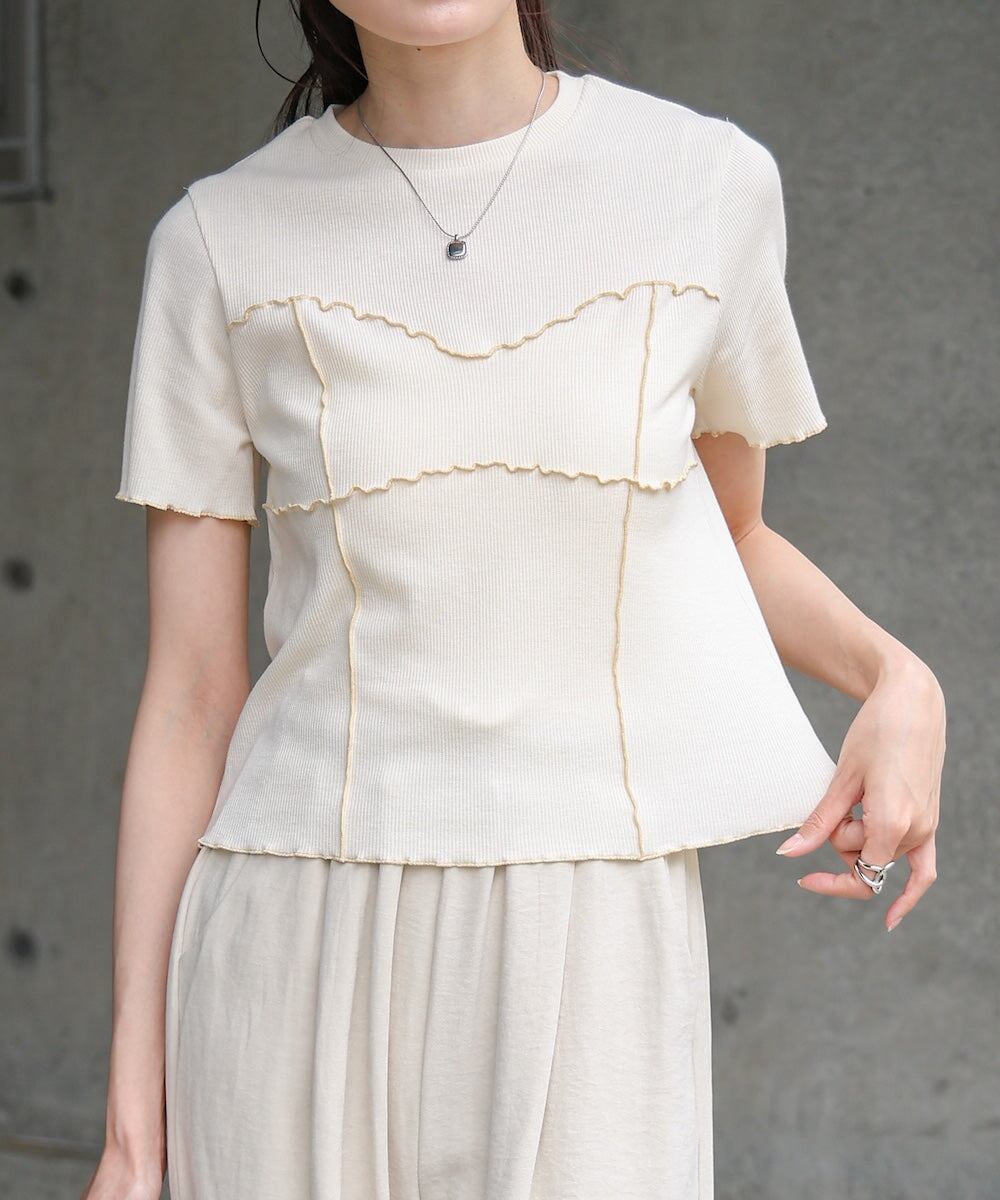 ビスチェ風のメロウ切り替えデザインが特徴で、一枚でレイヤード風の着こなしが楽しめるアイテムの登場です。配色のメロウステッチがアクセントになっていて、シンプルなのに存在感があり、着るだけでこなれ感を演出できます。ほどよくフィットするシルエットで、女性らしさもありつつ、着心地も抜群です。デザインに存在感があるので、ボトムはシンプルにまとめるのが◎。