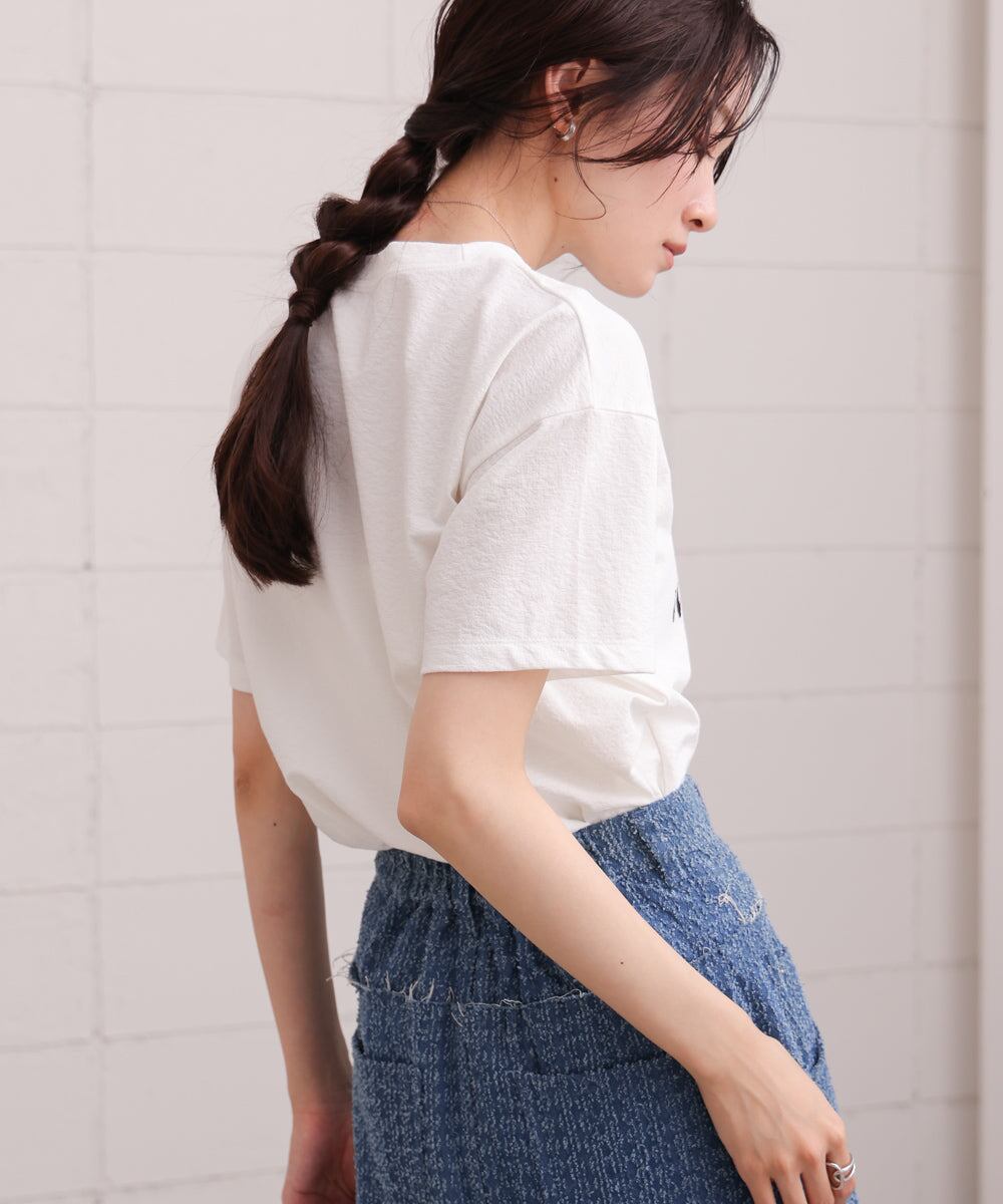 ざっくりとしたベストを合わせたり、シンプルなジャケット、シャツなどのインナーとしてロゴをアクセントに着用するのもおすすめ。