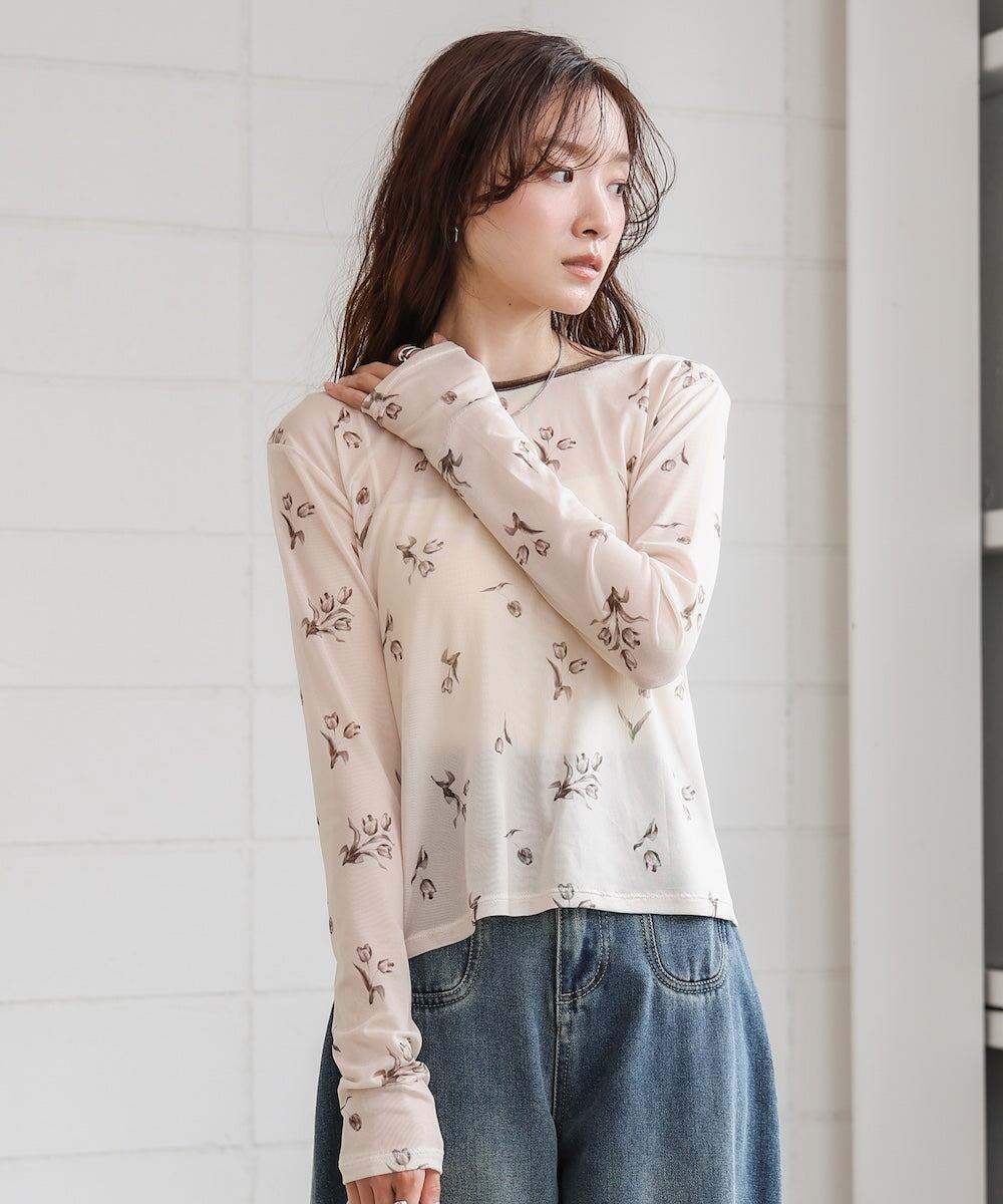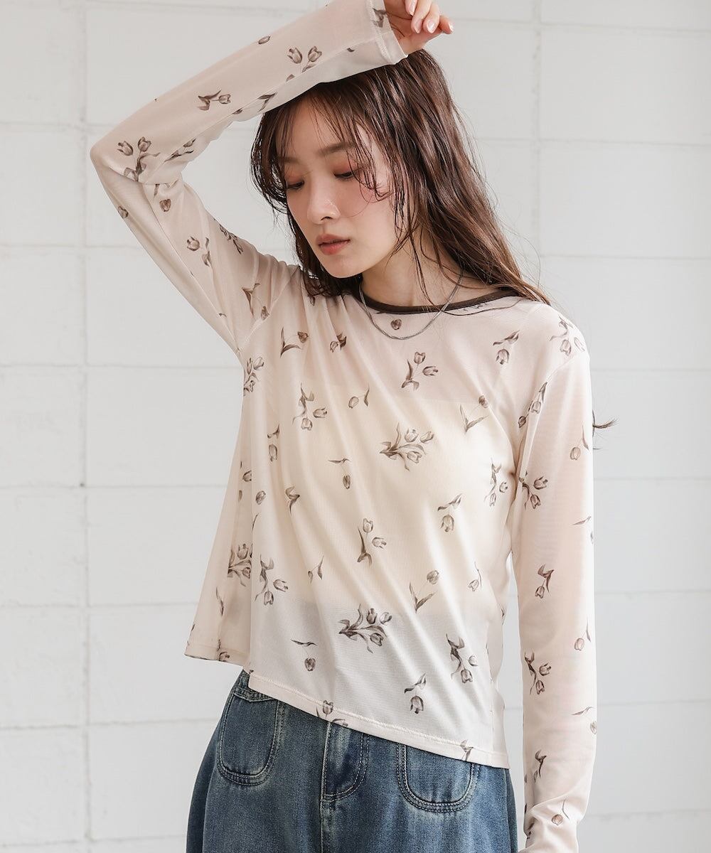リボンもアクセントになり、シアー素材で涼しげな印象をプラス。