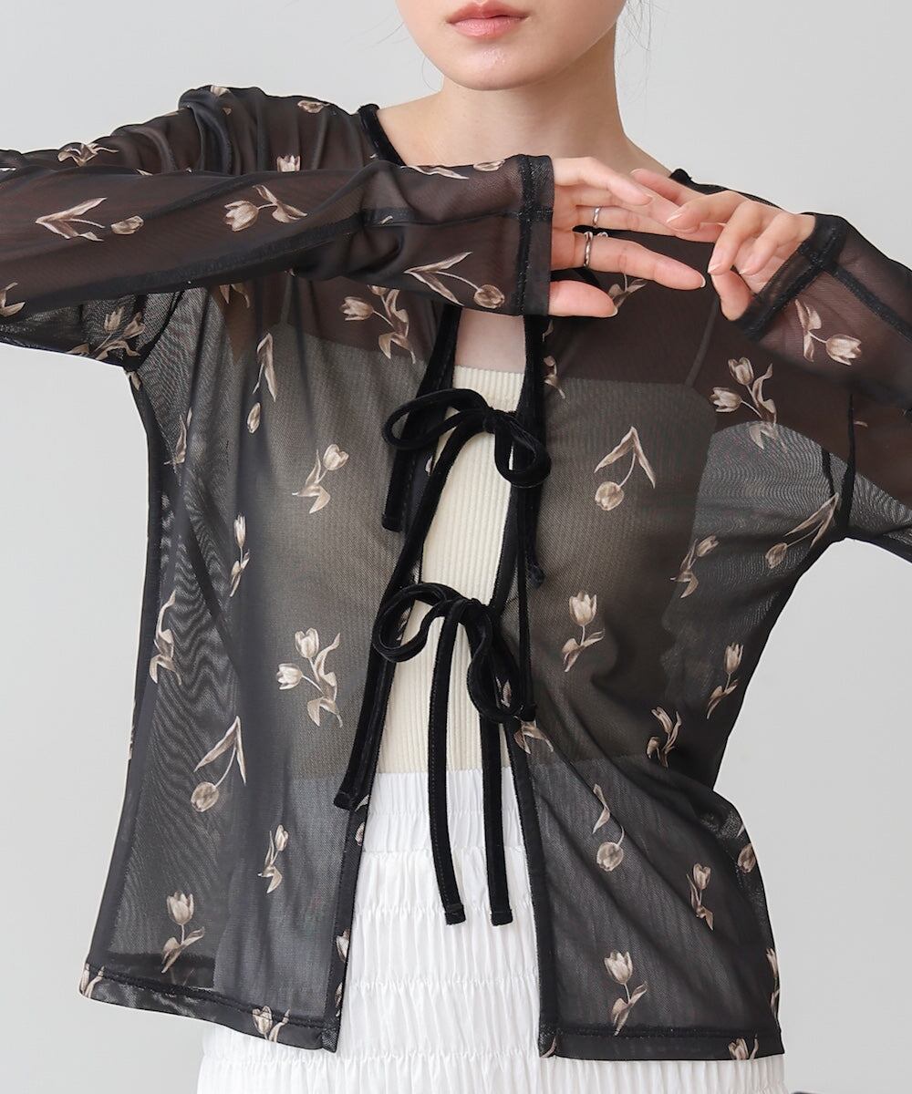 前後2WAY花柄リボンカーディガン