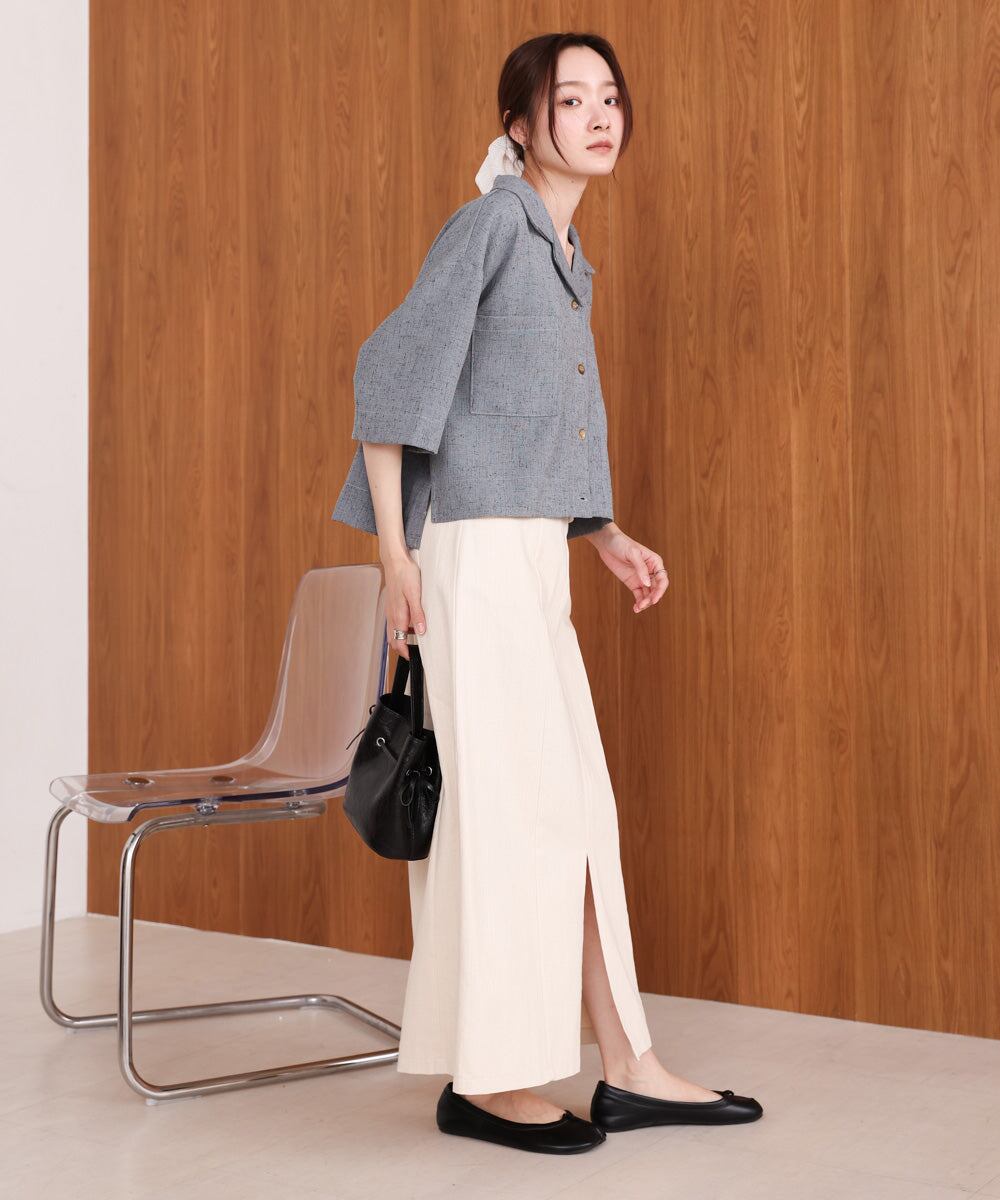 視線を上にあげるショートレングスで ボリュームのあるボトムスと相性抜群!キレイめ好きさんはスラックス合わせがおススメです。同じシリーズのワンピースとのセットアップもきちんと感があり、上品に着こなすことが出来ます。